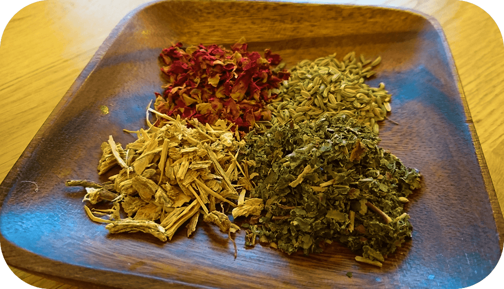 その日の体調やお悩みに合わせて、よもぎ薬草をセレクト。冷えやむくみ、美肌、代謝アップ、妊活など、女性のためのブレンドをご用意しています。